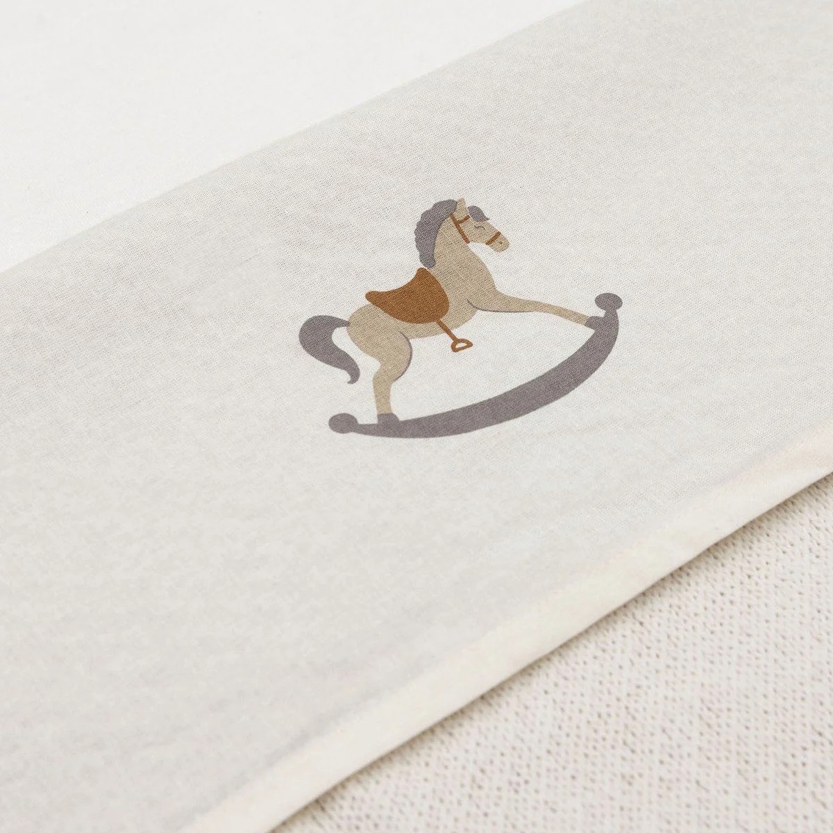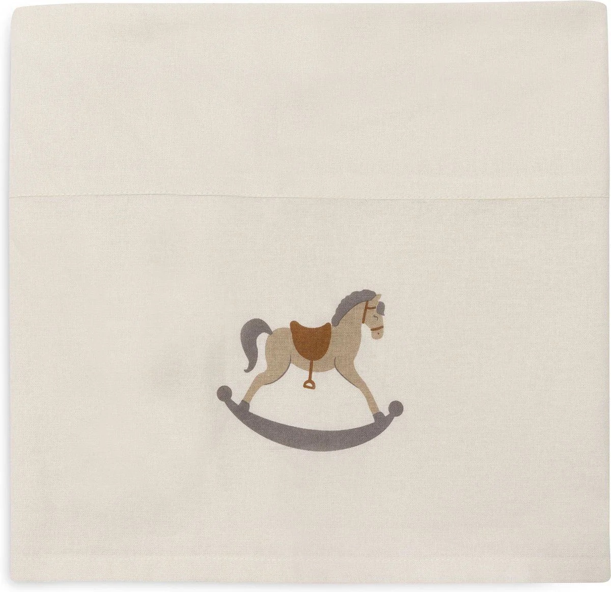 Acest cearșaf adorabil, în nuanța Ivory, este decorat cu un imprimeu delicat, având un cal imprimat pe marginea îndoită a cearșafului. Designul său clasic și elegant se potrivește perfect cu păturica din colecția Check Knit, creând un ambient plăcut și armonios în camera bebelușului.