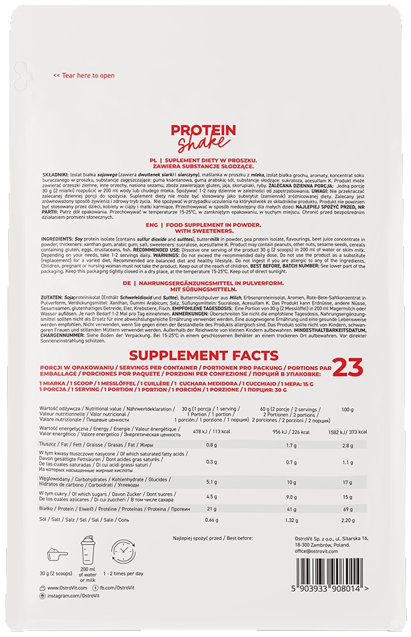 Proteină Ostrovit Protein Shake 700g Strawberry