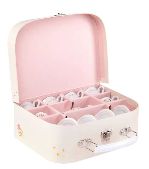 Set de ceai din ceramică, decorat cu modele delicate roz și aurii, prezentat într-o cutie ilustrată încântătoare, pentru a servi ceai mamei tale și micuților ei prieteni șoricei. Include 1 ceainic, 4 cești și 4 farfurii, 1 ulcior de lapte și 1 zaharniță.