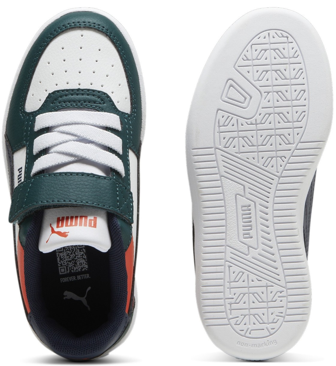 Ghete pentru copii Puma Caven 2.0 Block Ac+ Ps vă vor cufunda în vibe-ul vintage al universității americane. Tupeul sintetic cu suprapuneri căptușite, perforațiile de pe vârf și o talpă interioară amortizată SoftFoam+ sporesc confortul.