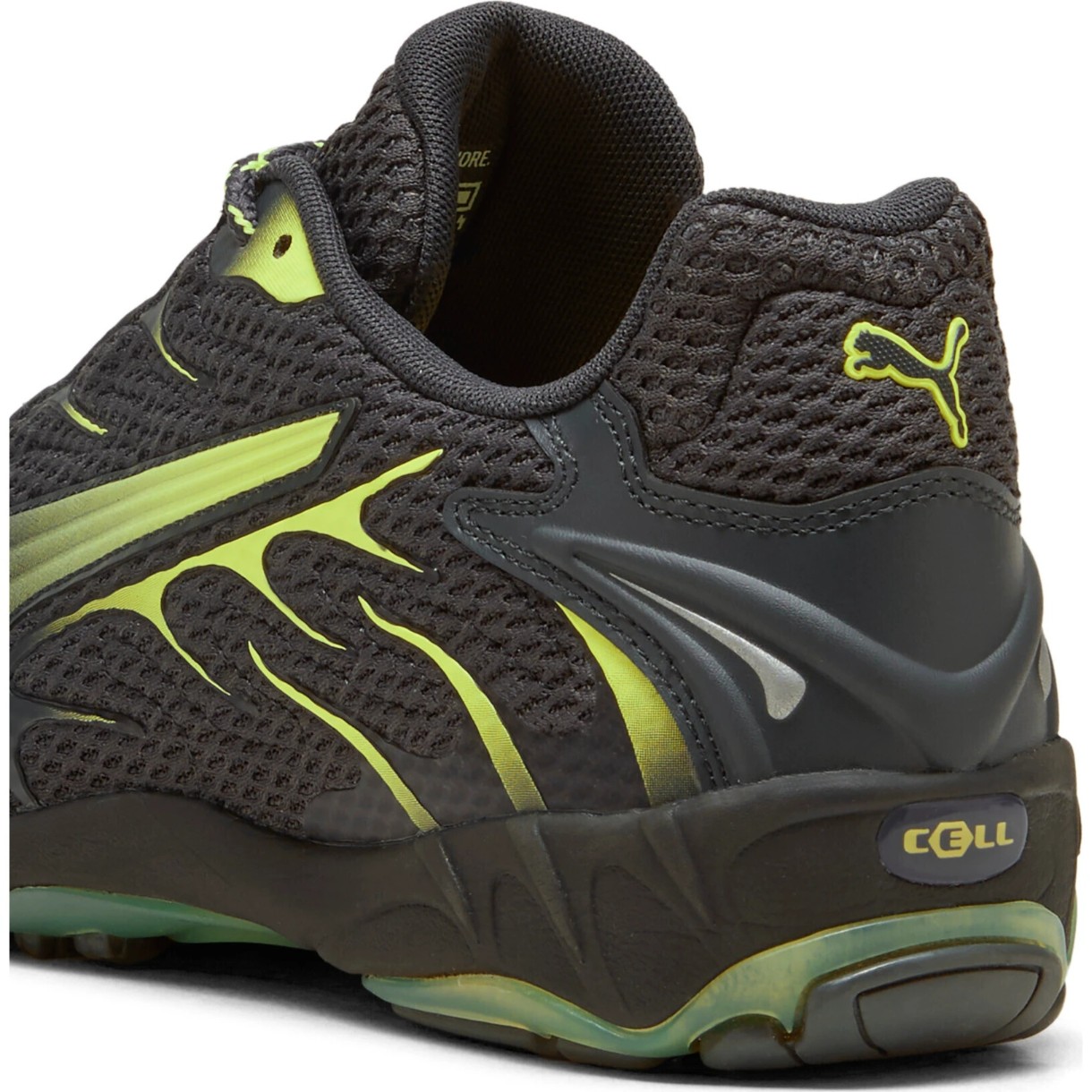 Tehnologia de amortizare CELL în călcâie și materialul de spumă CMEVA din talpa intermediară asigură moliciune și stabilitate, absorbând șocurile și reducând presiunea asupra piciorului. Talpa semi-transparentă, durabilă, cu un profil aderent garantează o prindere sigură pe suprafețe.