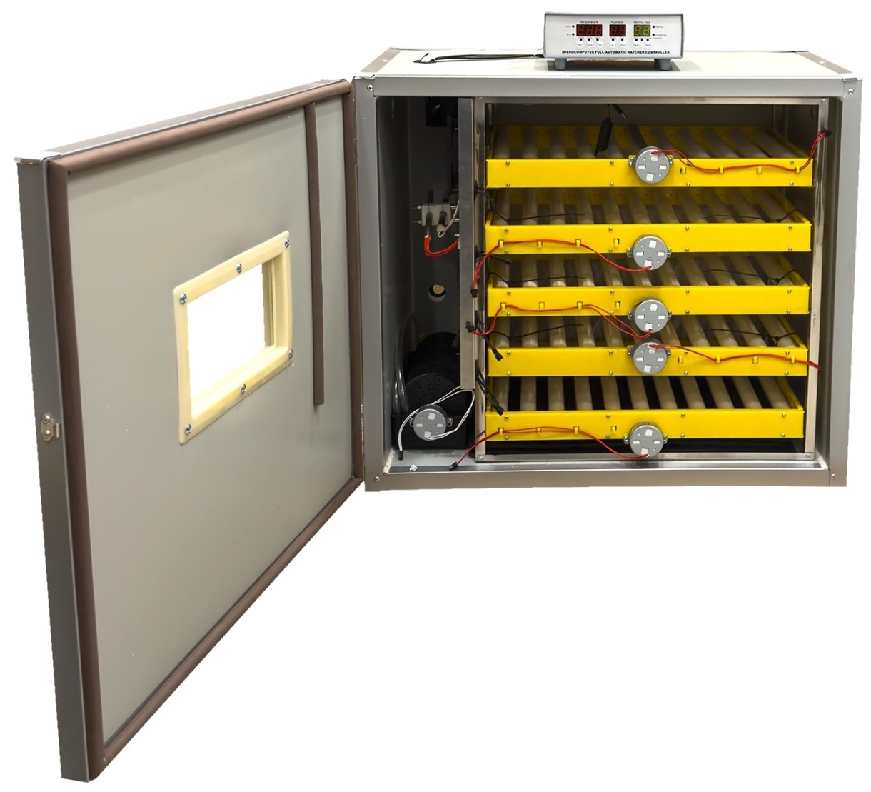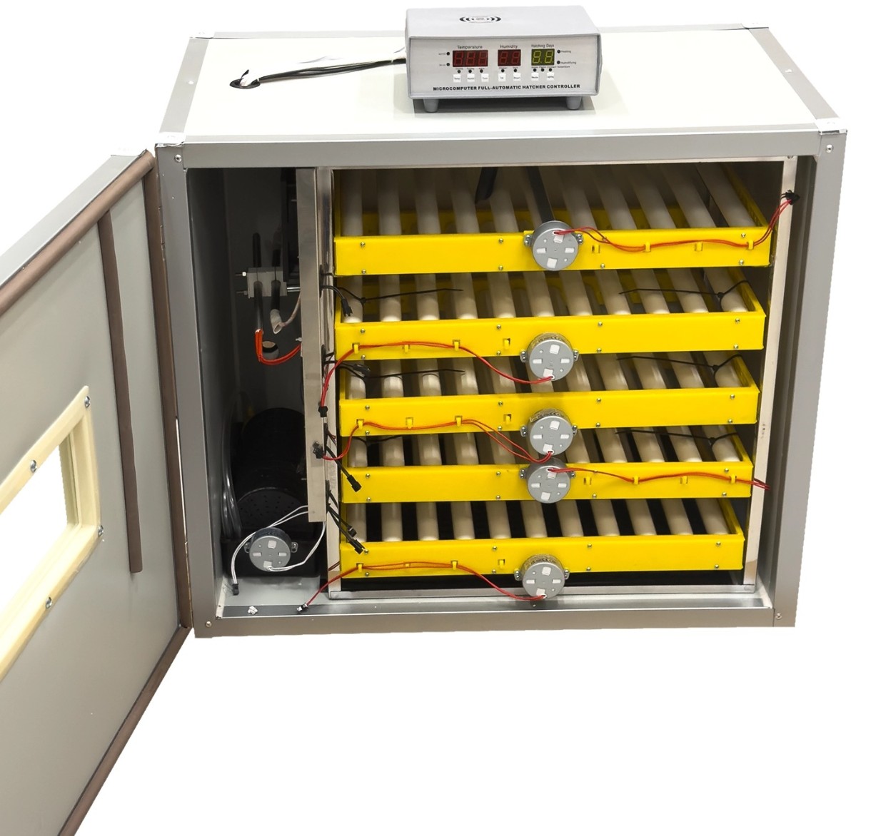 Ușa este echipată cu un geam termorezistent, permițând supravegherea ouălor