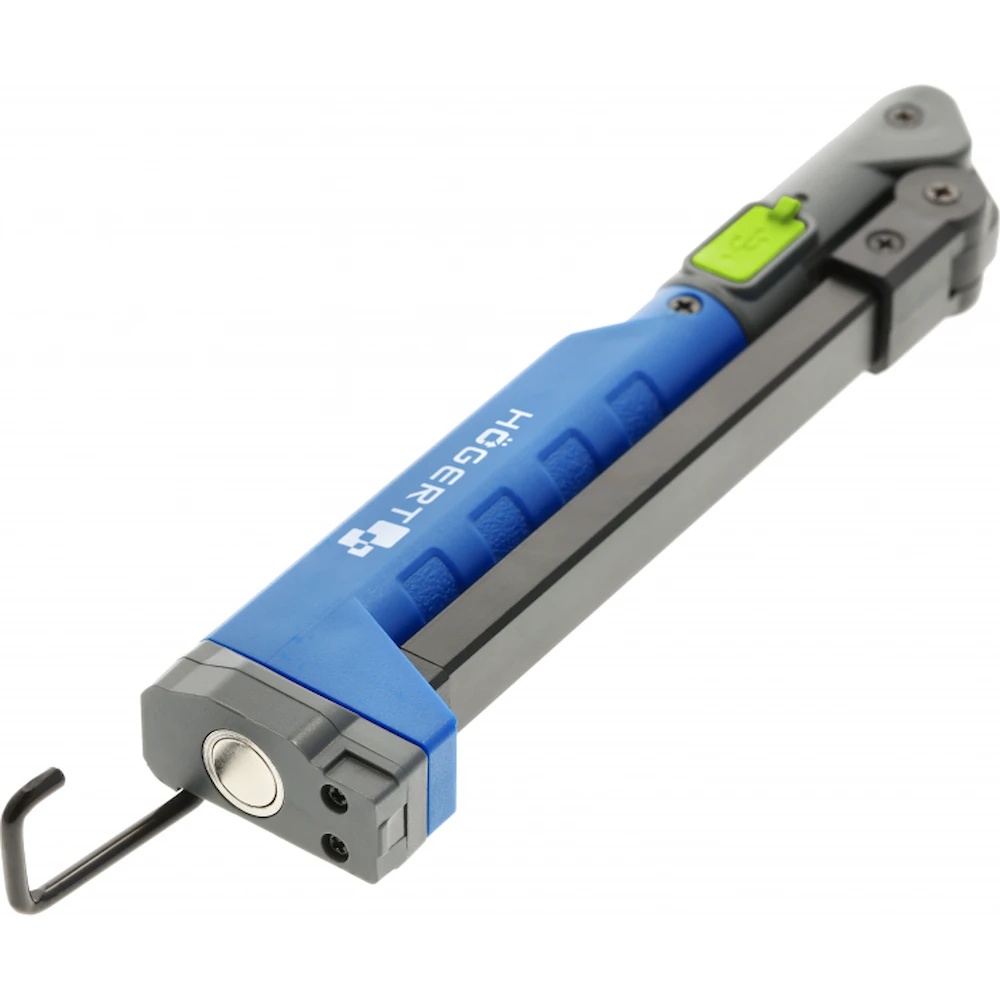 Lampa multifuncțională pentru iluminarea locurilor greu accesibile cu lumină ultravioletă. Este deosebit de utilă pentru atelierele auto și de vopsitorie, pentru instalatori și oriunde este necesară iluminarea ultravioletă. Modelul are 3 funcții de iluminare, ceea ce permite adaptarea perfectă a iluminatului la diferite sarcini. Lumină ultravioletă, lumina UV este folosită pentru detectarea lichidelor, de exemplu, scurgeri de ulei în motor. Aceasta are o funcție de reglare continuă a intensității luminii. Menținând apăsată butonul, reduceți lumina, oprind-o la eliberarea comutatorului. Capul rotativ permite reglarea direcției luminii, adaptând dispozitivul la nevoile curente. Magnetul puternic încorporat, cârligul metalic și clema permit fixarea lămpii în diverse moduri și eliberarea mâinilor pentru lucru. Lampa funcționează cu baterii reîncărcabile de înaltă calitate, de capacitate mare, care se încarcă prin USB-C.