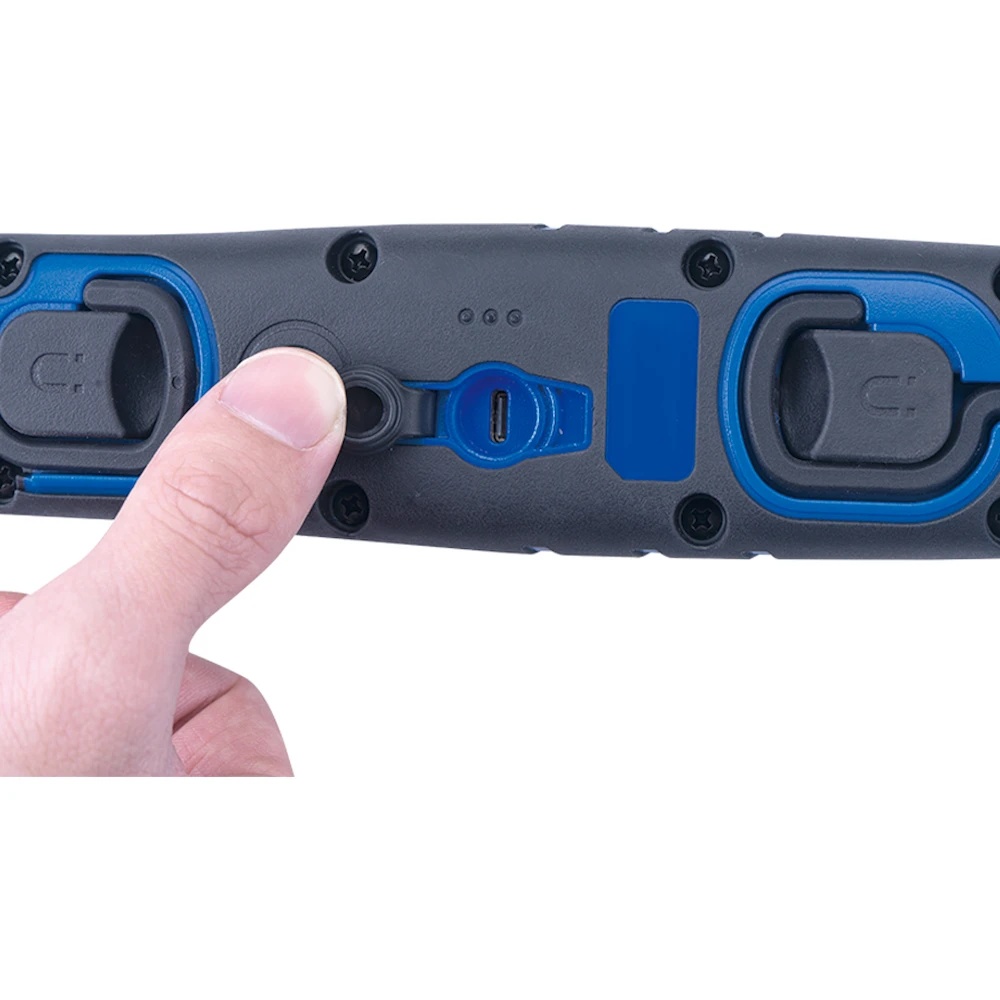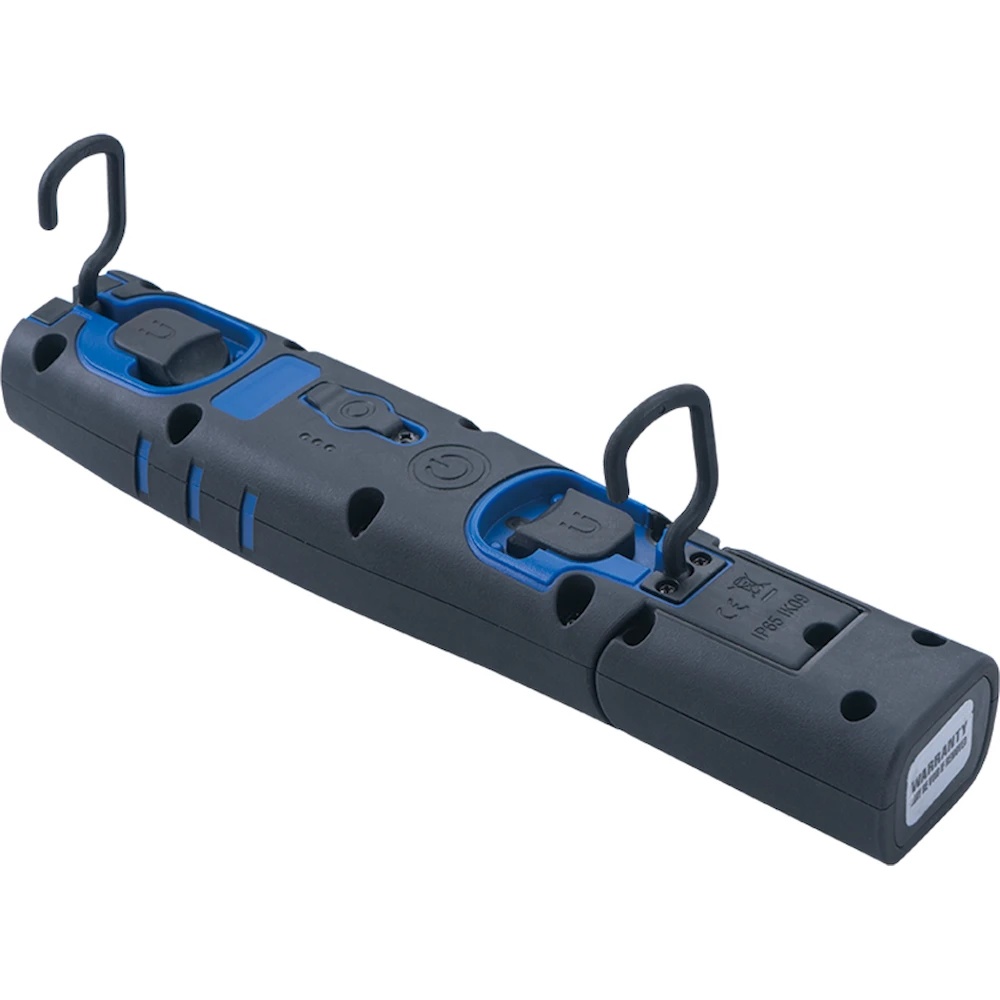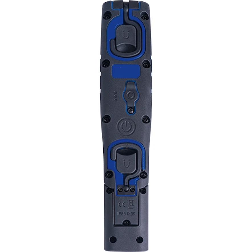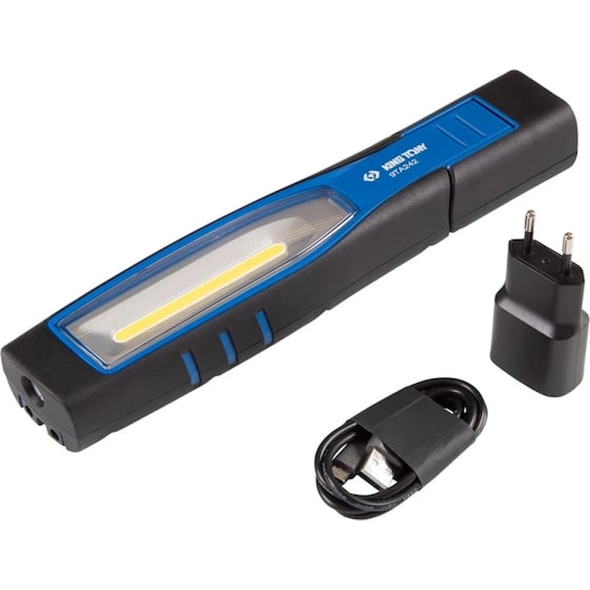 Elemente de iluminat, 7W COB LED + 4W SMD Moduri de funcționare: Lumină punctiformă / Lumină principală (Scăzut-Mediu-Strălucitor) Luminozitate și timp de funcționare: Lumină punctiformă 200 lumeni (lm) / 5 ore; Mod scăzut 150 lumeni (lm) / 8 ore; Mod mediu 350 lumeni (lm) / 4 ore; Mod strălucitor 700 lumeni (lm) / 2 ore Control, buton de pornire (punctiform, principal 3 moduri) Indicator LED de încărcare, 3 LED-uri
