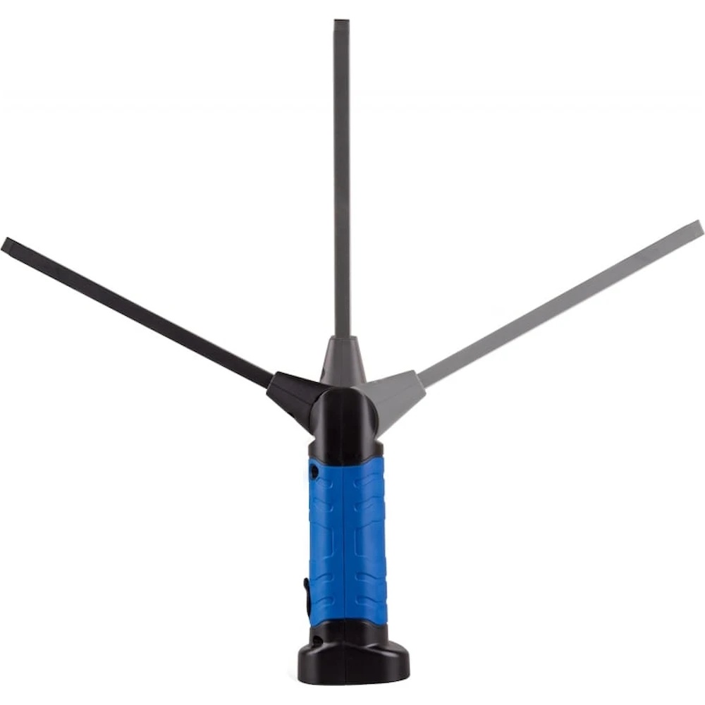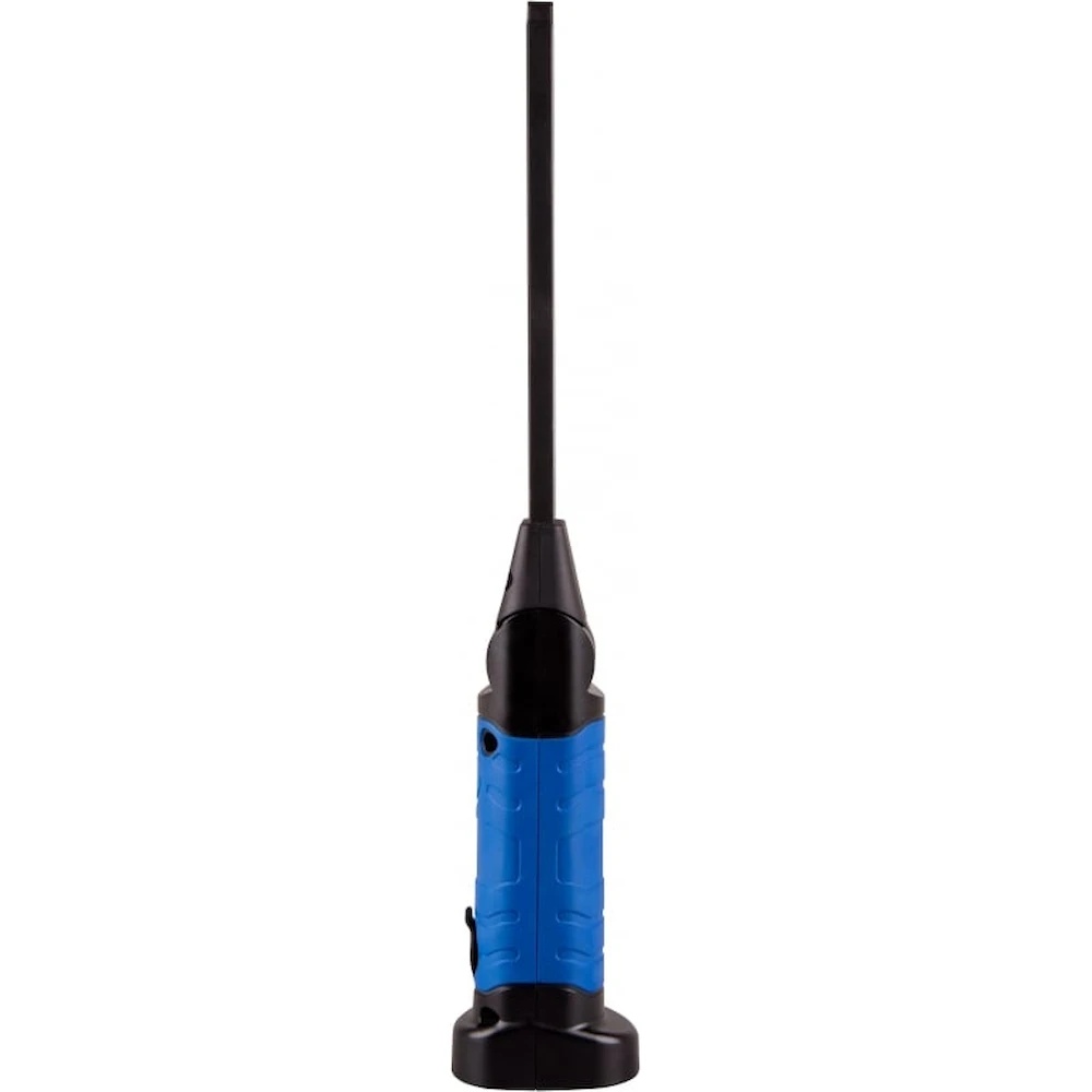 Lampa cu LED KING TONY cu braț flexibil, 1 element, Li-Ion, 3.7V 9TA261A este destinată iluminării locurilor greu accesibile în timpul întreținerii pieselor mecanismelor, ansamblurilor și în timpul altor lucrări de diagnosticare sau reparație în centrele de service auto, atelierele auto etc. Produsul are un nou tip de construcție: 5 poziții fixe de înclinare a secțiunii de iluminare în intervalul de 120°. Datorită construcției magnetice, lampa poate fi montată pe orice suprafață metalică sub orice unghi. Baza stabilă permite utilizarea lămpii ca lampă de birou, înclinând elementul de iluminare. Trei moduri de iluminare: punctiform, principal și cu intensitate maximă. Controlul secvențial al modurilor de funcționare se face cu un singur buton. Butonul este protejat împotriva umezelii și a murdăriei.