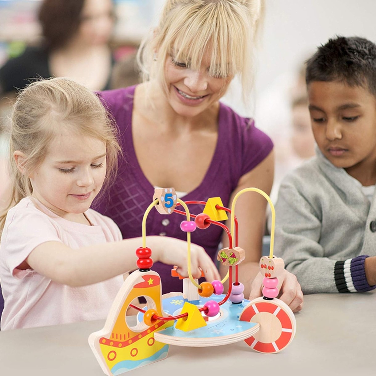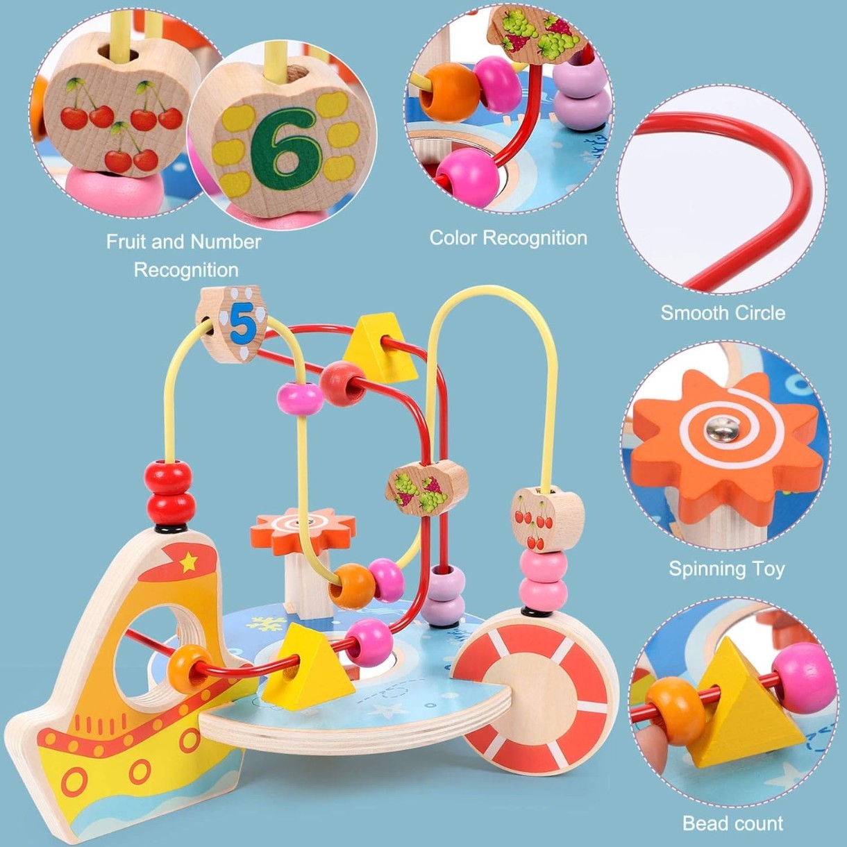 Îndoirile tuturor sârmelor alcătuiesc o structură complexă, bebelușul învață perseverență și răbdare și poți veni cu sarcini pentru bebeluși și condiții datorită diferitelor culori ale elementelor.