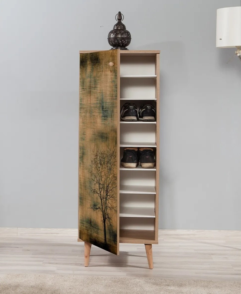 Realizat cu cea mai mare grijă și atenție la detalii, dulapul nostru de pantofi este fabricat din plăci aglomerate acoperite cu melamină 100%, asigurând durabilitate și longevitate. Grosimea de 18 mm adaugă robustețe, făcându-l o alegere de încredere pentru nevoile dvs. de depozitare a pantofilor. Dulapul stă drept pe picioare stabile, adăugând o notă de eleganță decorului casei dvs.
