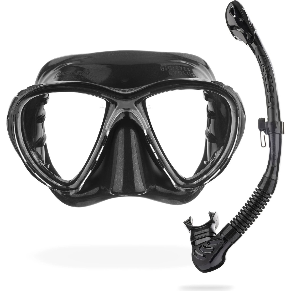 Masca si tub pentru înot Cressi Big Eyes Evolution + Alpha Ud Combo Black/Black (WDS337550)