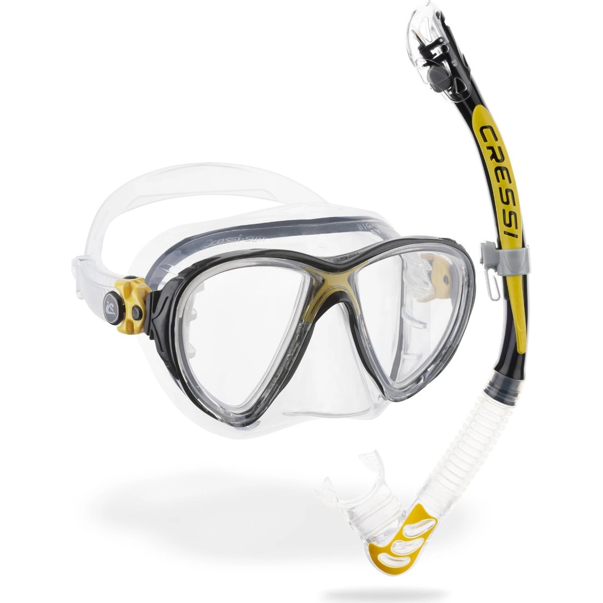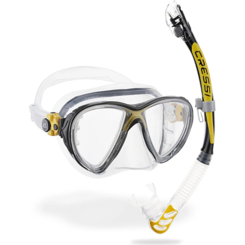 Masca si tub pentru înot Cressi Big Eyes Evolution + Alpha Ud Combo Clear/Yellow (DS337010)
