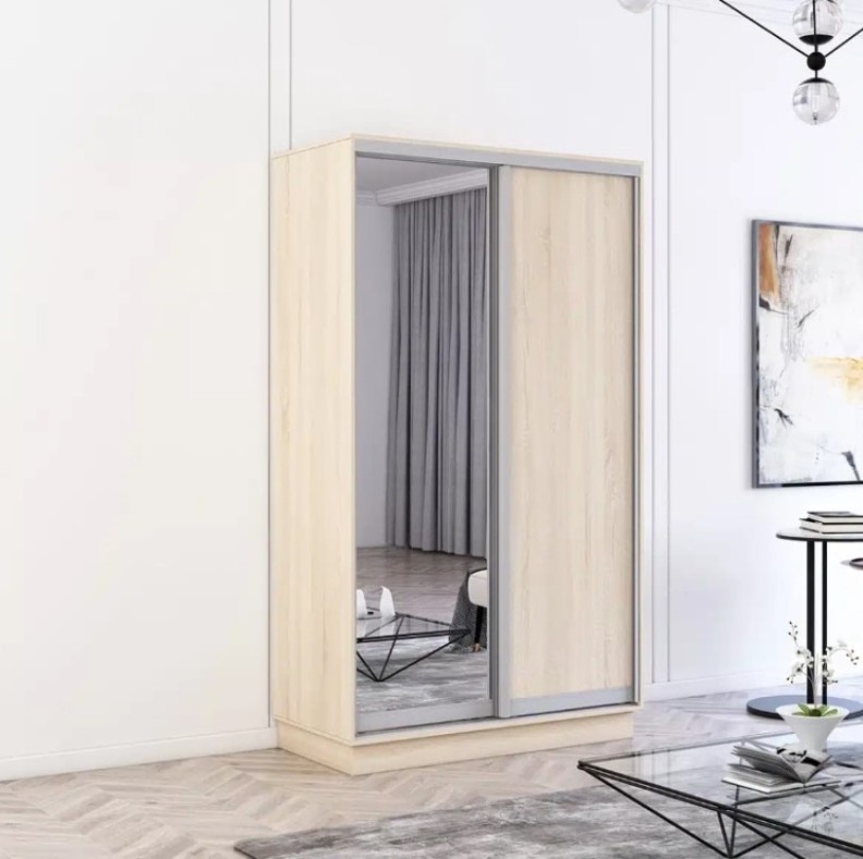 Dulap cu uşi glisante Mobildor-Lux Fox Chipboard/Mirror 160x240 Oak Sonoma (fox6454)