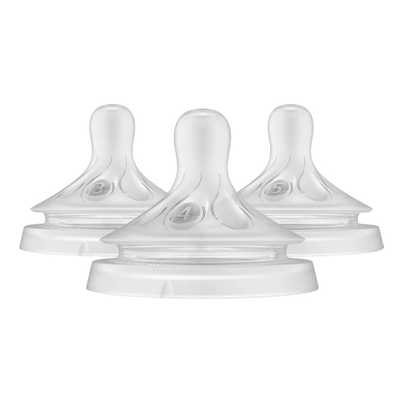 Pachetul conține trei tetine cu debite diferite – mediu, rapid și extrarapid – permițându-ți să adaptezi cu ușurință fluxul de lapte în funcție de nevoile în schimbare ale copilului tău. Ideal pentru părinții care îmbină alăptarea cu hrănirea la biberon, acest set oferă flexibilitate și confort pentru o tranziție cât mai naturală.