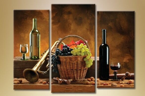 Pictură Magic Color Triptych Still Life Wine and Grapes (1547290)