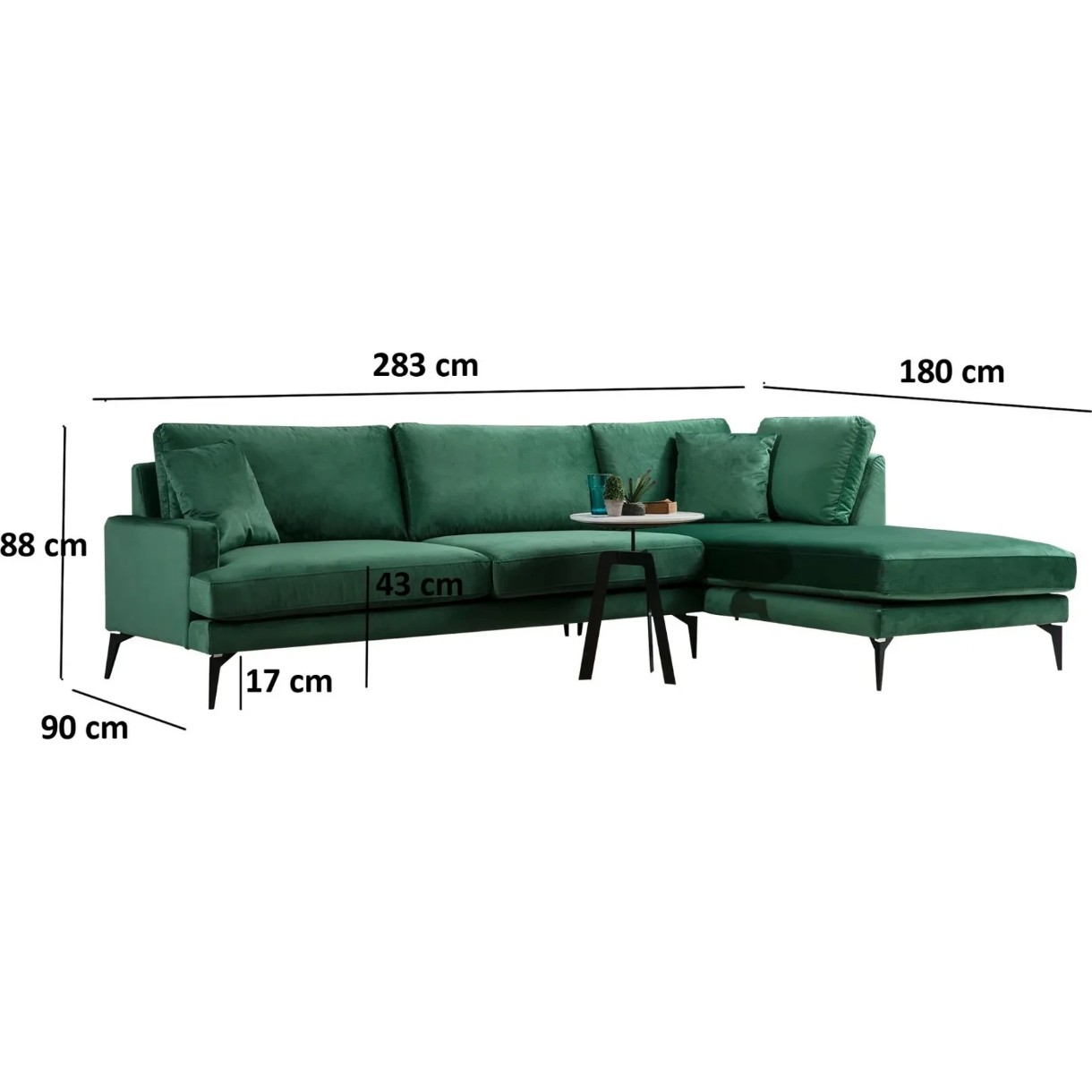 Canapea de colț Trendy Papira L3+CHL R Green 283x180x88cm GTR003612