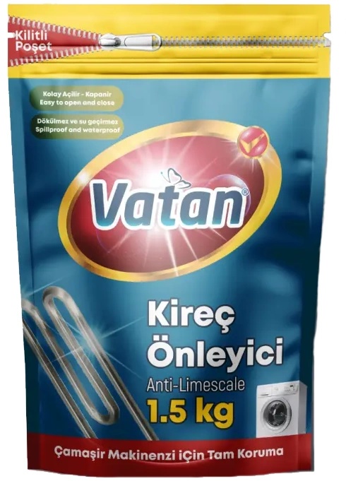 Produsul împotriva calcarului Vatan 1,5 kg sub formă de pulbere este destinat protecției mașinii de spălat împotriva depunerilor de calcar. Reduce eficient duritatea apei, previne acumularea calcarului pe elementele de încălzire și componentele mașinii, prelungind durata de viață a echipamentului. Produsul poate fi folosit împreună cu orice detergent și asigură rufe mai moi după spălare.