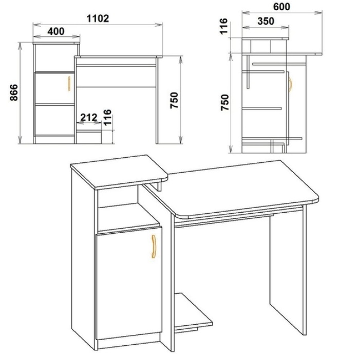 Masa de birou Компанит СКМ- 2 Nimfeia Alb