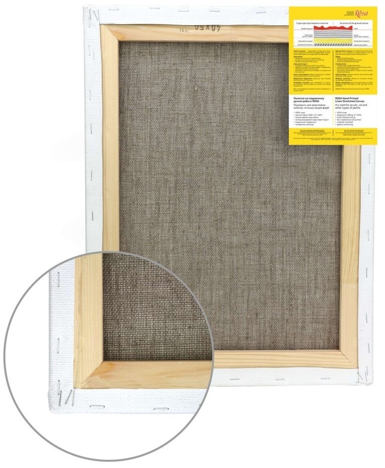 Ramele de întindere ROSA sunt suporturi de pictură pentru artiștii profesioniști, realizate din in natural ROSA întins în stil galerie pe o ramă modulară din lemn de pin laminat.