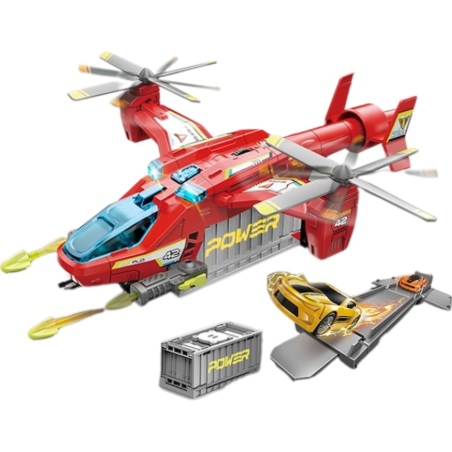 Modelul viu colorat și dinamic al elicopterului MH 613 este alegerea perfectă pentru jocuri captivante! Elicopterul este echipat cu elice rotative și elemente interactive care imită zborul real și acțiunile de luptă. Efectele sonore fac jocul mai realist și mai captivant.