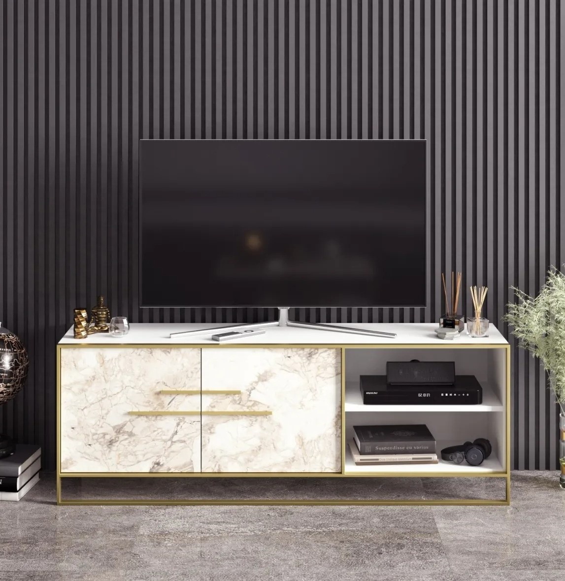 Comodă TV Trendy Polka White Marble/Gold 160x56.6x38.5cm GTR006414