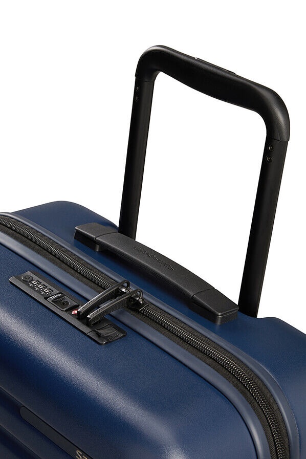 Samsonite StackD Spinner este un bagaj de călătorie urban modern, fabricat din policarbonat, un polimer ușor, rezistent și incredibil de durabil, cu un finisaj mat. Toată țesătura utilizată la producerea modelului este obținută din reciclarea recipientelor din plastic — una dintre amenințările moderne pentru mediu.