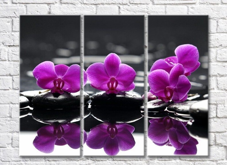 Pictură Gallerix Triptych with purple orchids on black stones (500728)
