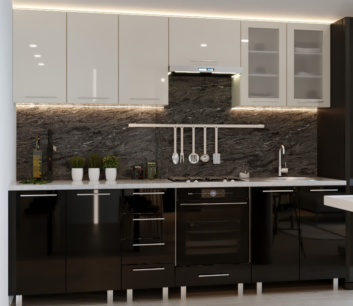 Bucătărie Bafimob Iulia (High Gloss) 2.6m Beige/Black