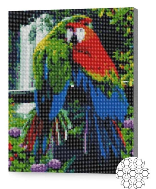 Pictura cu diamante după numere Art Gallery Premium Papagali în junglă 30x40cm (XQB74007)
