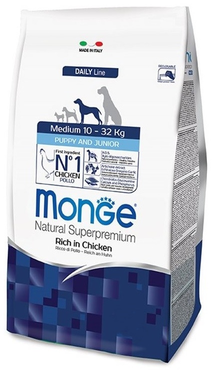 Hrană uscată pentru câini Monge Superpremium Medium Puppy & Junior Rich in Chicken 800g