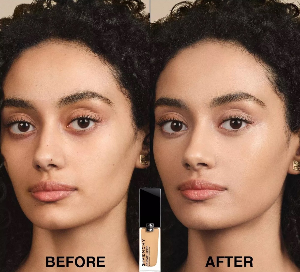 Fondul de ten-serum Givenchy Glow Serum Foundation, parte din colecția iconică Prisme Libre, creează o bază luminoasă cu efect de soft focus, care rezistă până la 24 de ore. Acest fluid lejer este potrivit pentru toate tipurile de piele și oferă o acoperire medie, ce poate fi intensificată după preferință.