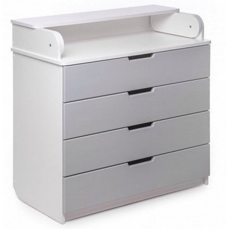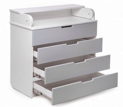 Partea superioară a comodei poate fi pliată cu ușurință și se transformă într-un loc de schimbare convenabil, care poate fi, de asemenea, îndepărtat cu ușurință dacă este necesar. Iar laturile rotunjite vă permit să nu vă faceți griji pentru siguranța copilului dumneavoastră.