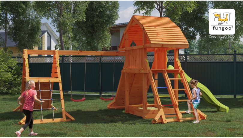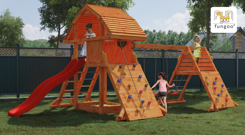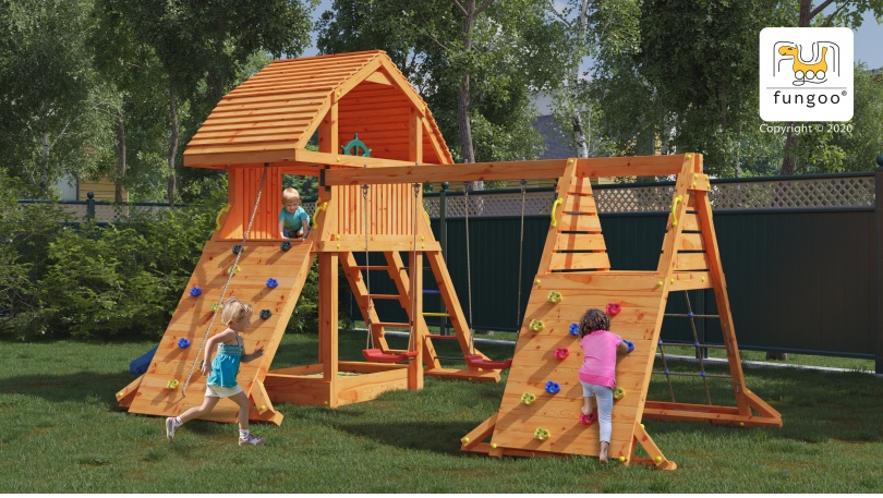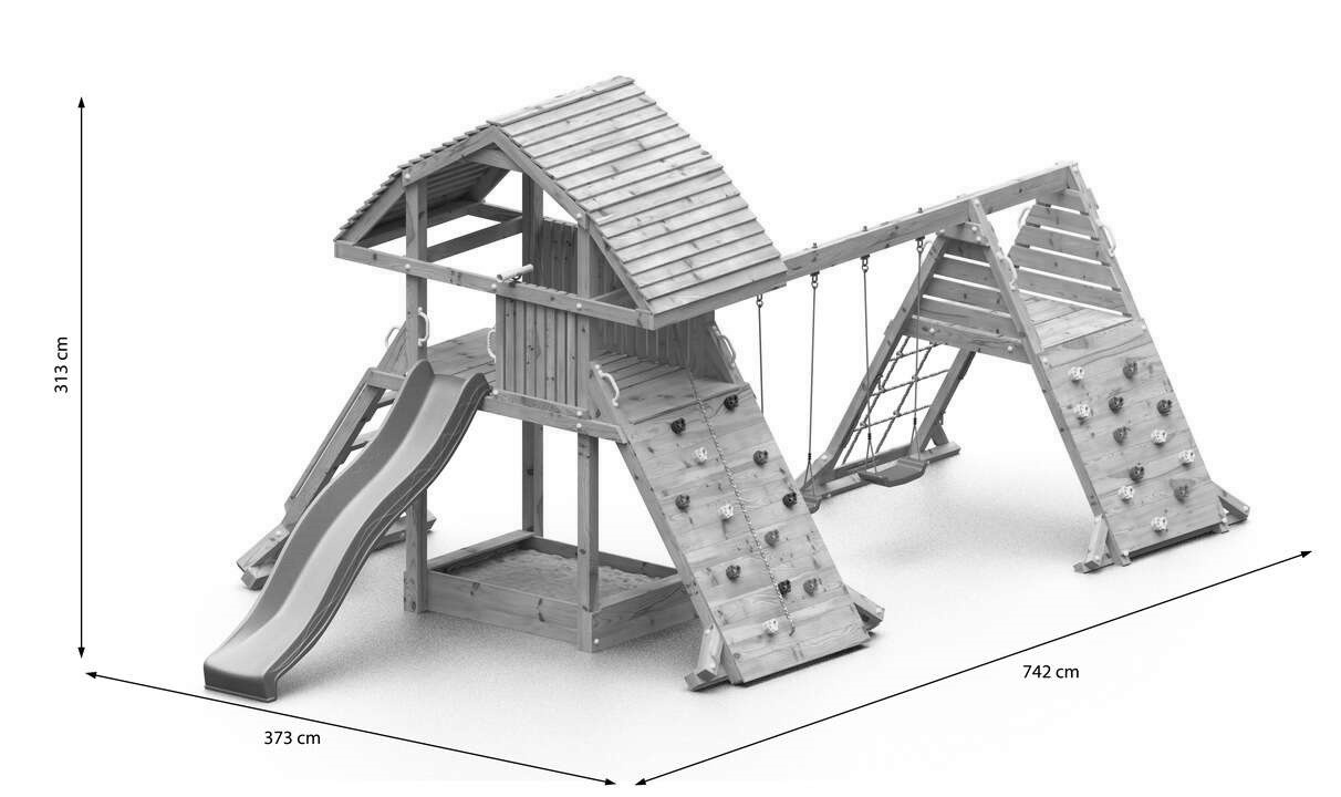 In setnisipar, tobogan, leagăne, scara, perete de alpinism