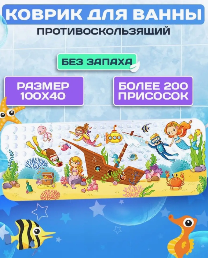 Covoraș de baie anti-alunecare 4Play Seabed 100x40cm