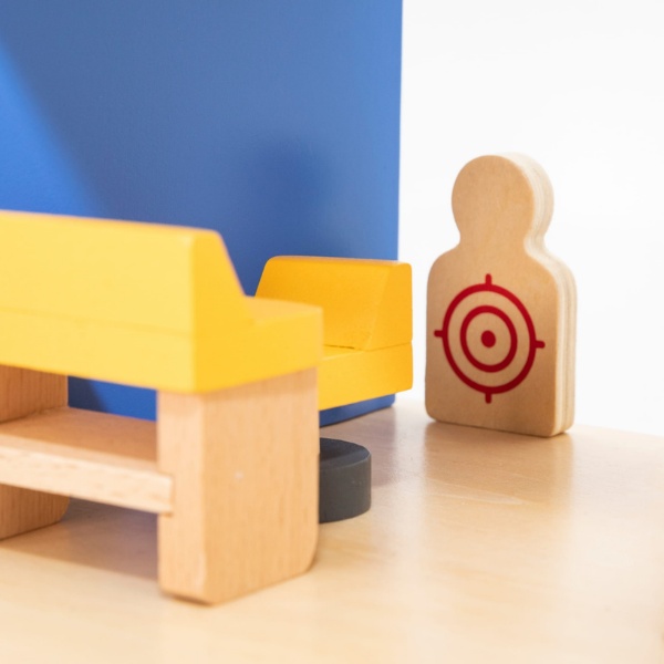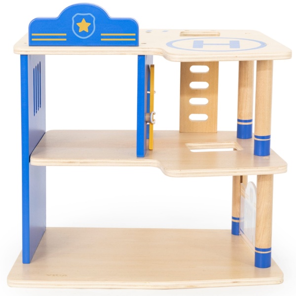 Introduce copilul în captivanta lume a aventurilor de poliție cu setul din lemn Viga „Sector de poliție”, un complex cu trei niveluri ideal pentru jocuri imaginative și educative.