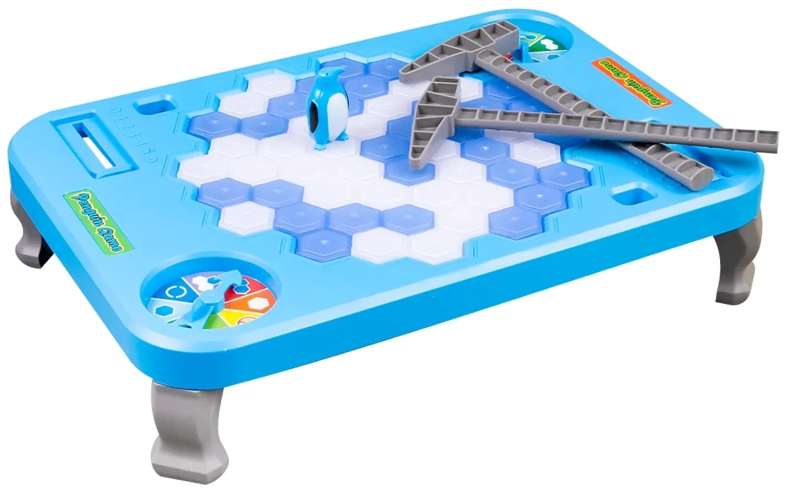 In setteren de joc, cuburi de gheață albastră - 28 buc, cuburi de gheață albă - 28 buc, pinguin, picioare pentru terenul de joc - 4 buc, ciocan - 2 buc