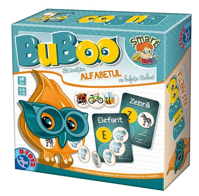 Acest joc face parte din seria jocurilor educative Buboo, cu ajutorul căruia copiii pot învăța literele alfabetului într-un mod distractiv și competitiv! Regulamentul include mai multe variante de joc pentru începători și jucători avansați, fiind ideal atât pentru preșcolari cât și pentru cei care vor să exerseze alfabetul.