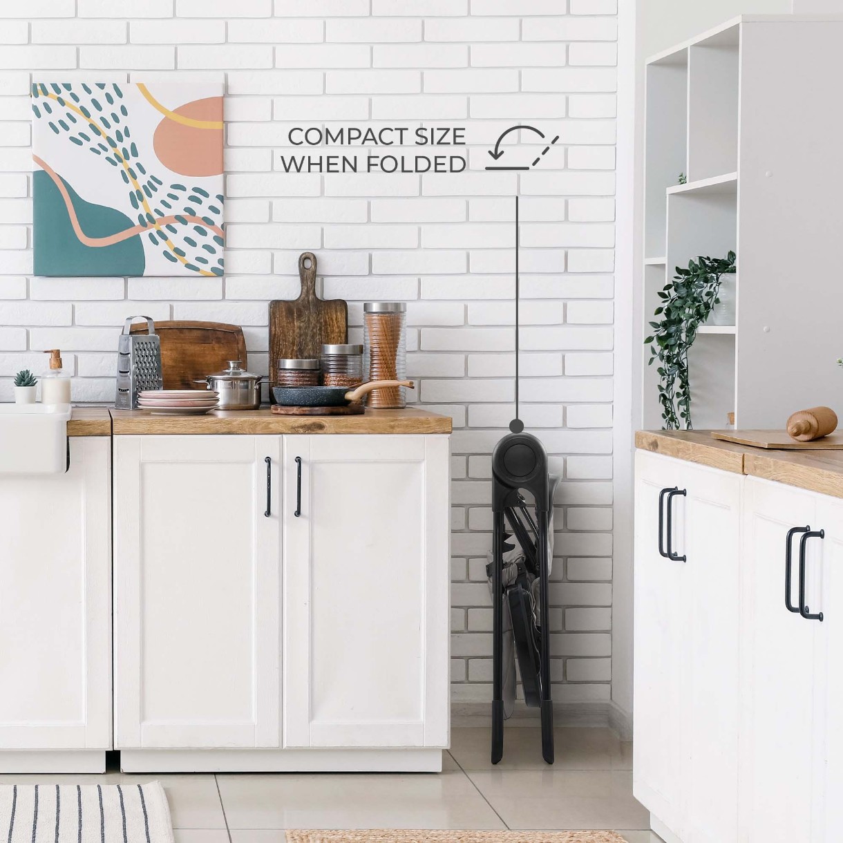 • Super compact atunci când este pliat - încape cu ușurință într-un dulap, o nișă sau portbagajul mașinii. Perfect pentru apartamente mici și escapade de weekend.