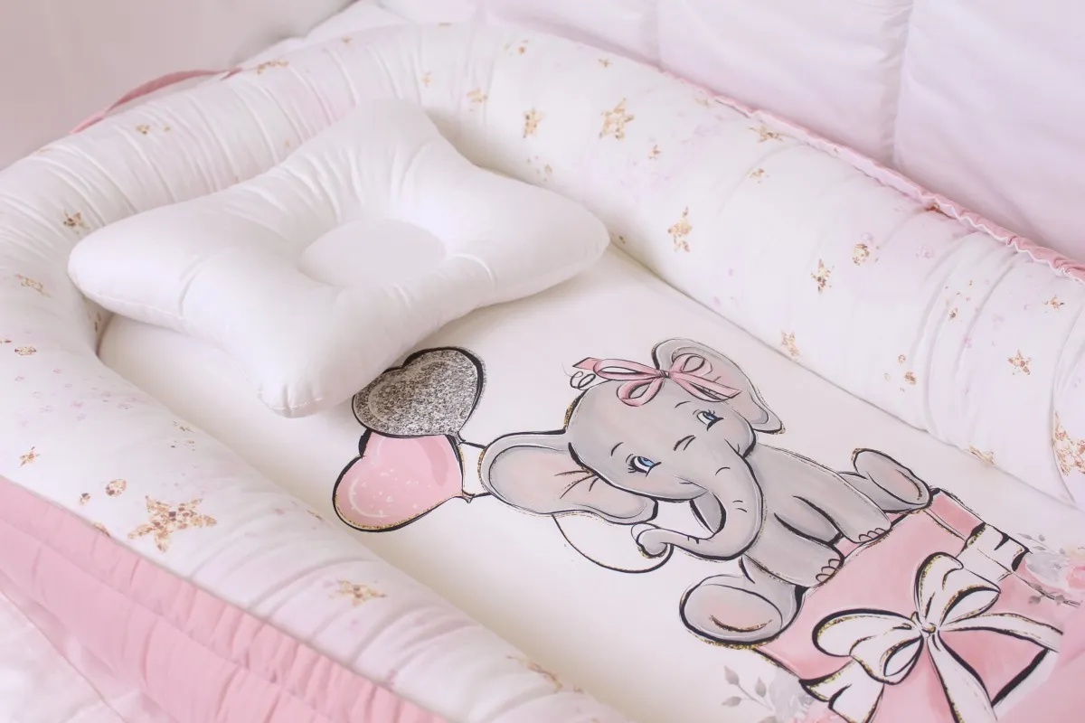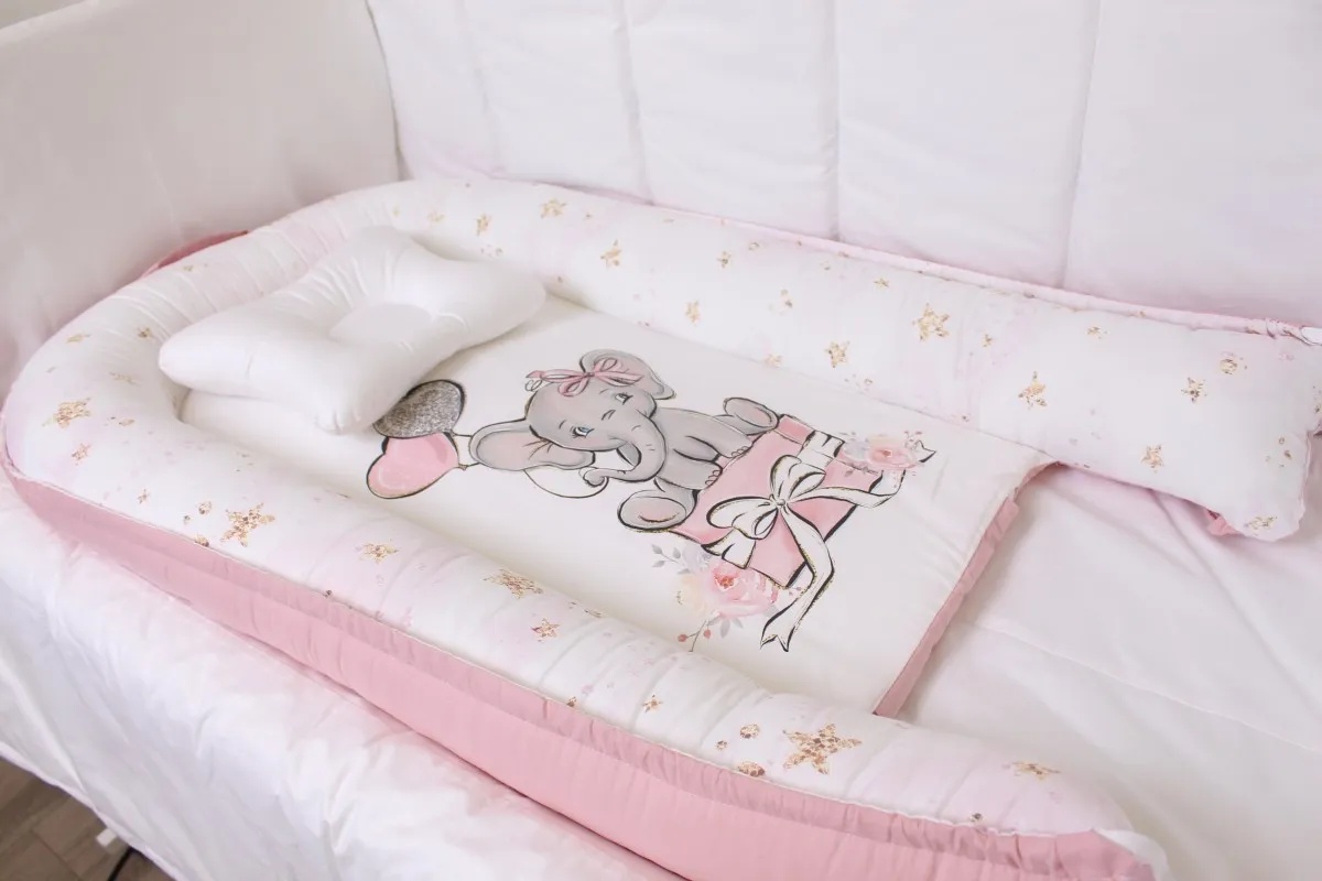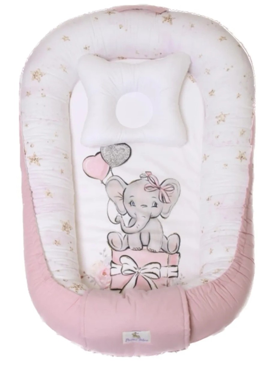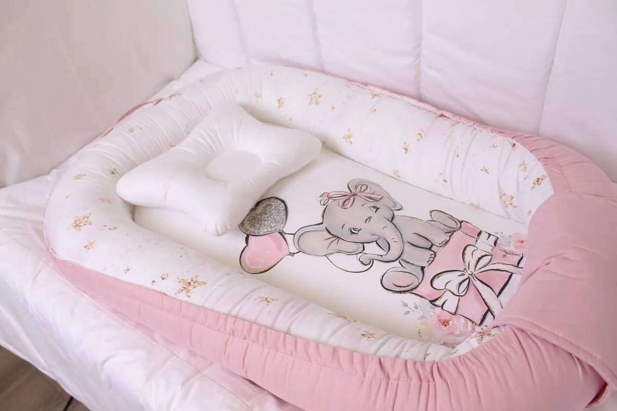 Cuib pentru bebelúș Perna Mea Premium Elefant Pink