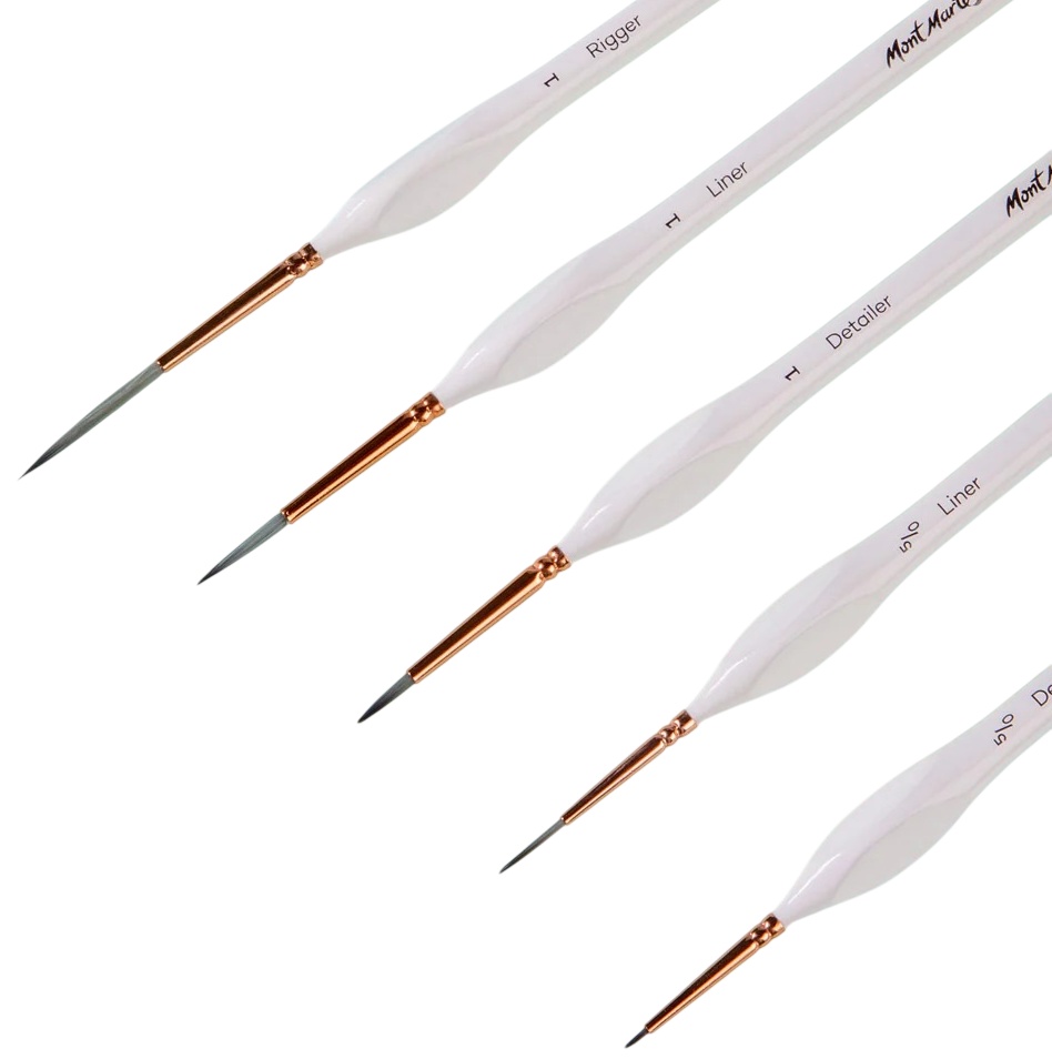 Setul de pensule Signature Mont Marte Detail and Liner este perfect pentru proiecte mici și lucrări de artă detaliate. Mânerele groase și confortabile permit detalii fine și sunt potrivite pentru toate tipurile de vopsele și mediile, inclusiv acrilice, uleiuri și acuarele.
