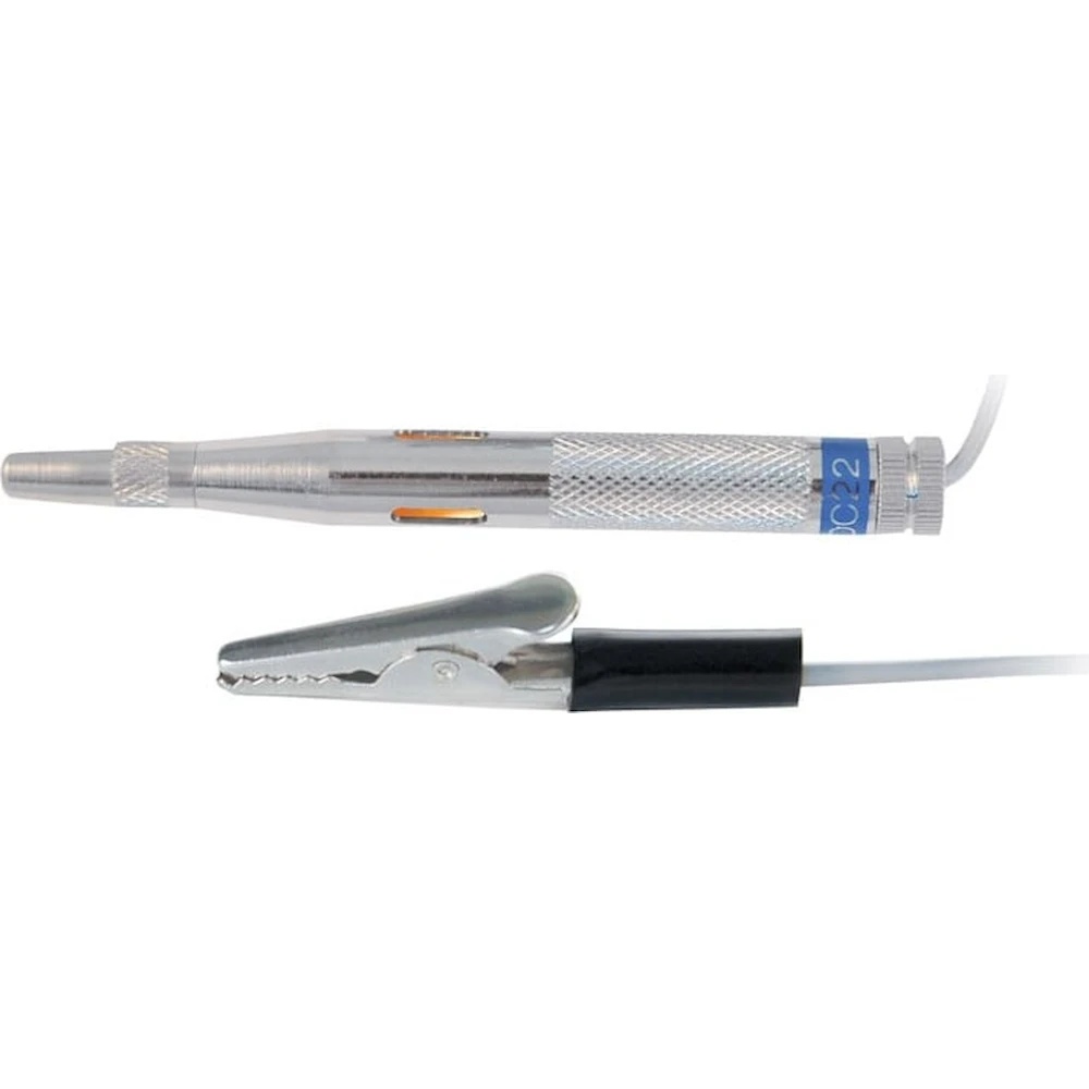 Testerul pentru verificarea tensiunii 6-24V KING TONY 9DC22 este un echipament auxiliar pentru mecanicii auto. Modelul permite detectarea tensiunii și a scurgerilor de curent în sistemul electric al automobilului. Striațiile de pe carcasă exclud alunecarea testerului din mâini. Dispozitivul funcționează cu încredere cu o tensiune în intervalul de la 6 la 24 V.