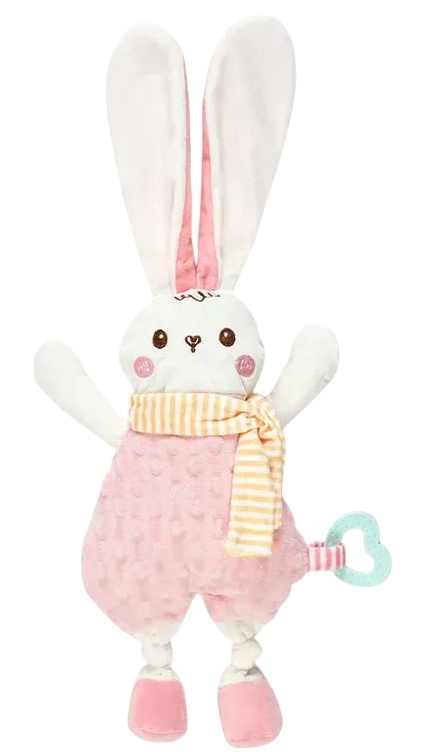 Această jucărie moale și confortabilă din material textil pentru nou-născuți va deveni companionul indispensabil al bebelușului dumneavoastră. Această zornăitoare moale va ajuta la calmarea și relaxarea bebelușului și, de asemenea, la ameliorarea stresului și a anxietății. Această jucărie confortabilă este fabricată dintr-un material moale, plăcut la atingere, are urechi încrețite și un inel de dentiție. Această jucărie pentru bebeluși îndeplinește toate cerințele de siguranță.