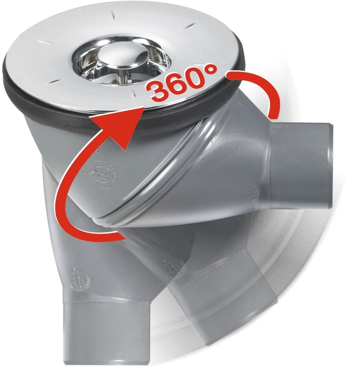 O veritabilă revoluție, ieșirea regalabilă la 360 grade permite o instalare în orizontală verticală sau oricare poziție intermediară. Grație debitului foarte rapid - 30 l/min în poziție orizontală și 40 l/min în poziție verticală sub 15 mm nivelul apei. Filtrul detașabil a fost conceput pentru a reține părul și alte deșeuri. Foarte compact și discret. Garnitura cu acoperire a sifonului se menține fixă în timpul instalării cădiței de duș.