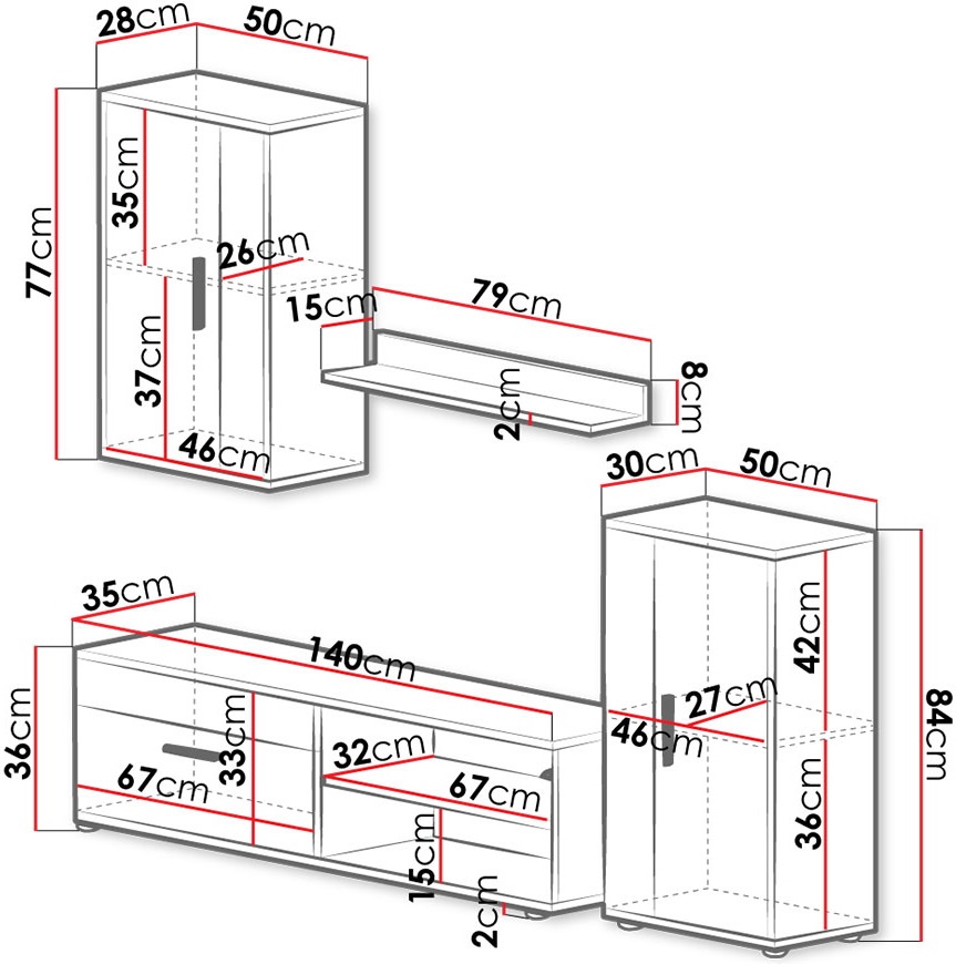 Dimensiuni dulap TV140x36x35 cm