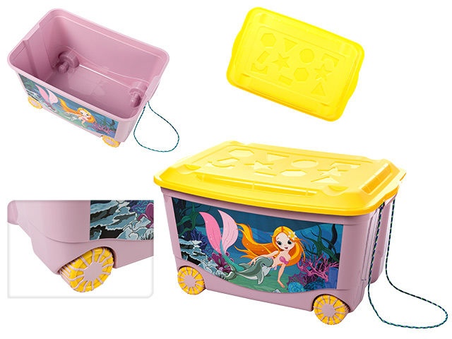 O cutie luminoasa si originala pe roti se va potrivi perfect intr-o camera pentru copii si va deveni indispensabila pentru depozitarea jucariilor, cartilor si a altor accesorii pentru copii. Designul si schema de culori fac din cutie o „jucarie”: poate fi folosita ca casa, masina, taxi, masa etc. Rotile in doua culori ale cutiei sunt acoperite cu un material elastic special care creste stabilitatea. si reduce zgomotul la contactul cu diferite acoperiri de podea. Exista manere de transport convenabile, precum si gauri speciale prin care puteti fileta coarda (inclusa), astfel incat copilul sa o poata deplasa cu usurinta. Capacul cutiei este decorat cu forme geometrice. Designul incuietorilor va permite sa fixati capacul, care previne patrunderea prafului, umezelii etc.