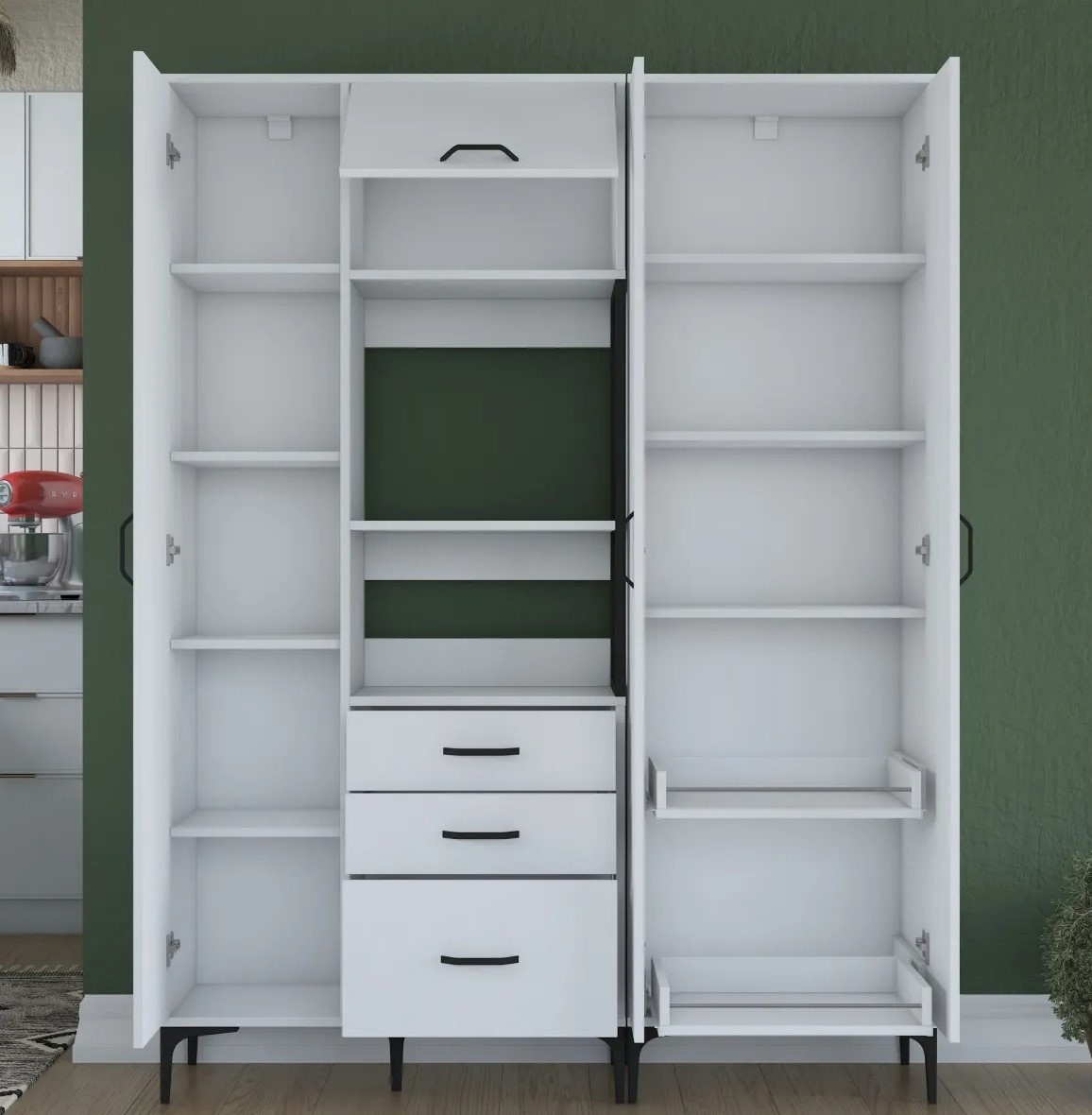 Cu o grosime de 18 mm, o lățime de 150 cm, o înălțime de 198.6 cm și o adâncime de 40 cm, această comodă oferă un spațiu amplu de depozitare fără a compromite stilul. Caracterul său multifuncțional permite depozitarea diverselor obiecte, de la cărți și documente la haine și accesorii. Rafturile reglabile oferă flexibilitate, permițând personalizarea comodei în funcție de nevoile specifice.