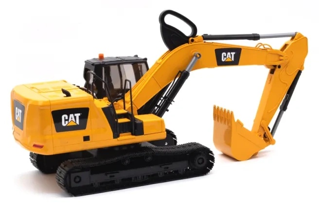 Excavatorul are șenile mobile și un braț mobil complet funcțional cu o cupă. Cabina se rotește la 360°, ușile se deschid și o figurină BWORLD poate fi plasată în cabină. Excavatorul CAT are și o capotă care poate fi deschisă în două locuri.