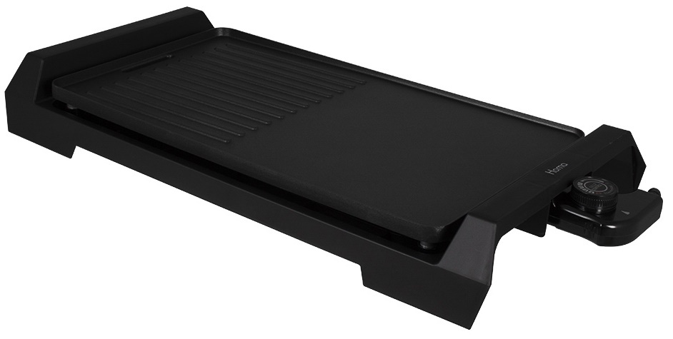 În plusplacă din aluminiu turnat cu 2 zone de grătar: 1/2 grătar cu nervuri, 1/2 placă netedă