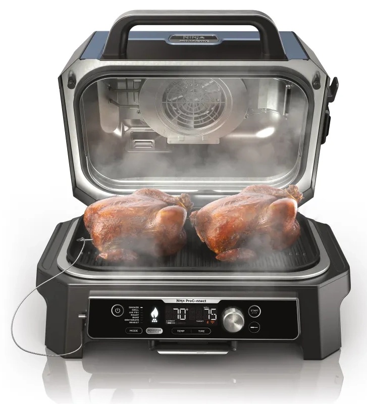 Imaginează-ți un aparat de gătit care oferă beneficiile tehnologiei moderne și aroma grătarului tradițional. Exact asta este grătarul și afumătoarea electrică Ninja Woodfire Pro Connect XL OG901EU – un maestru versatil al gătitului în aer liber. Acest grătar nu doar gătește mâncare, ci creează adevărate capodopere gastronomice cu 7 metode diferite de gătit. Iar afumătoarea încorporată, care folosește peleți de lemn adevărat, oferă preparatelor o aromă unică de fum. Dimensiunea compactă a grătarului este ideală pentru orice spațiu, de la o terasă spațioasă până la un balcon confortabil. Și cu controlul prin aplicație și o sondă inteligentă de temperatură încorporată, veți obține întotdeauna rezultate perfecte. Gust de restaurant al cărnii cu diferite grade de coacere, aromă unică de pește sau legume. Bine ați venit în lumea grătarului rafinat cu Ninja!