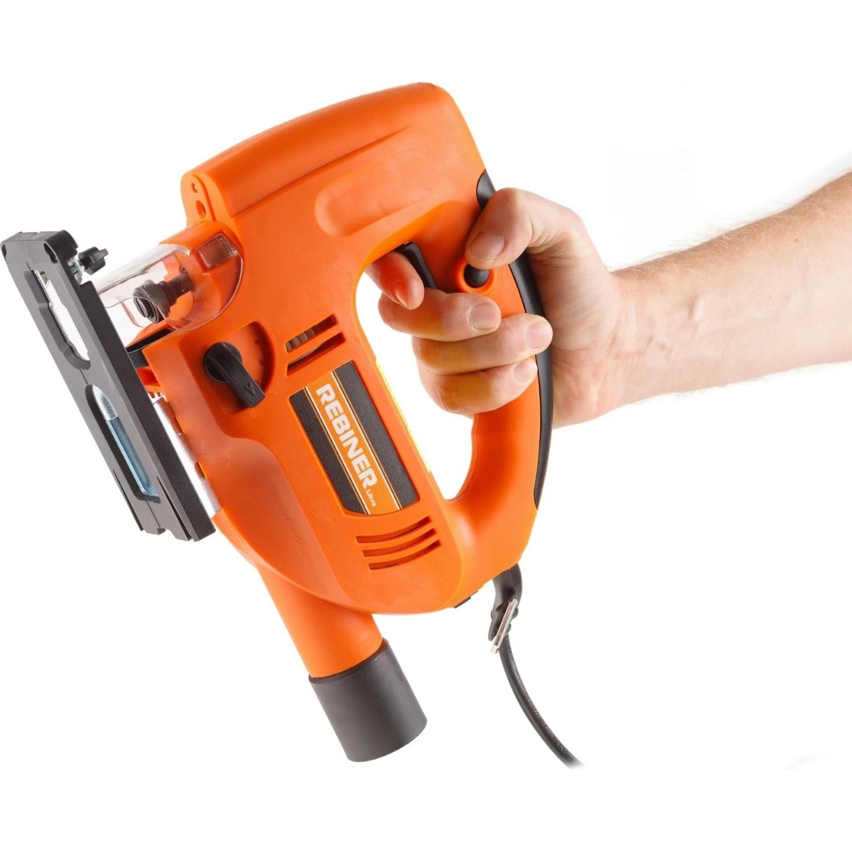 Rebiner RJS-1250 este utilizat pentru tăierea longitudinală, transversală și în forme a produselor din lemn, PAL, MDF, metal și diverse tipuri de plastic. Prezența mișcării pendulare permite realizarea atât a tăierilor rapide și brute, cât și a celor precise și fine, ceea ce crește funcționalitatea uneltei. Regulatorul de turație permite ajustarea uneltei pentru a lucra cu un anumit tip de material.