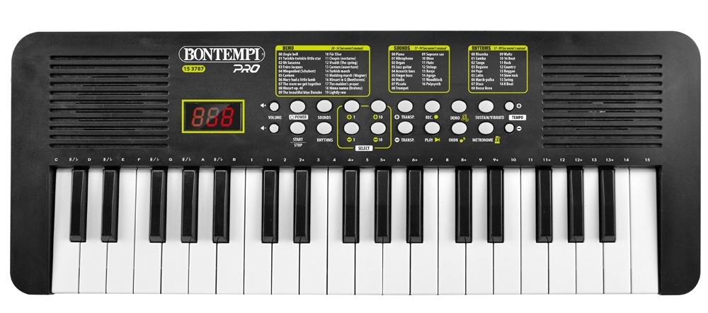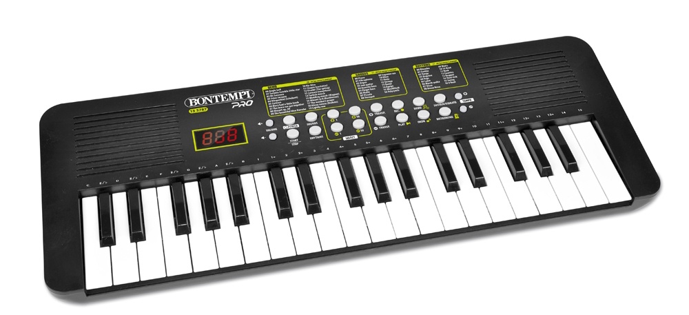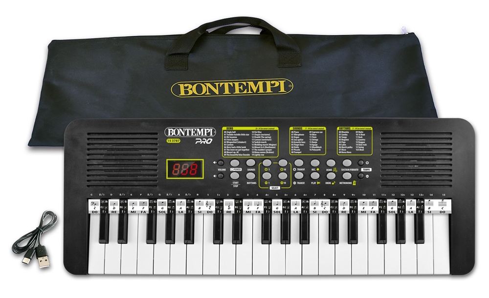 Pian electric Bontempi cu 37 de clape. Compact, elegant și plin de funcții, acest pian este primul tău pas în lumea muzicii! Efectele de vibrato și sustain adaugă profunzime sunetului, iar funcția de înregistrare îți permite să-ți păstrezi capodoperele. Este portabil și se încarcă convenabil prin USB Type-C. Include un cablu, o bandă muzicală și o geantă cu fermoar pentru depozitare și transport.