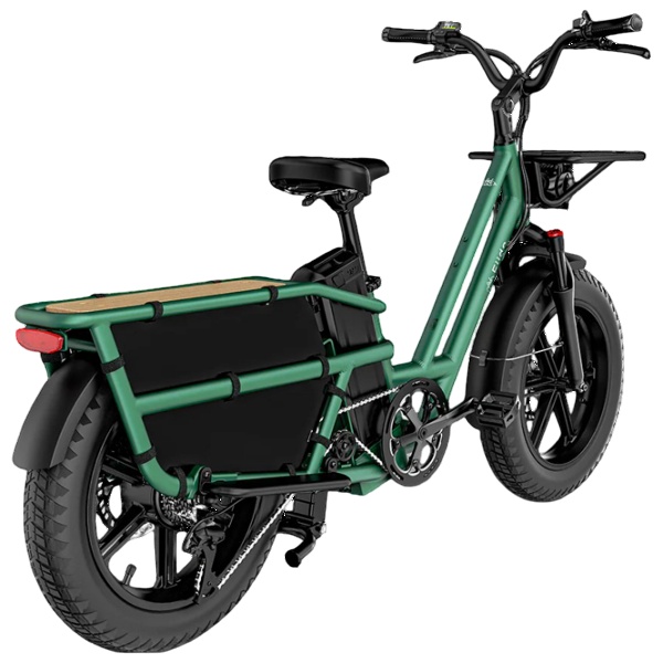 Bicicleta electrică FIIDO T2 Longtail Cargo E‑bike este un vehicul multifuncțional ideal pentru familie, afaceri sau aventuri. Are un cadru din aluminiu cu platformă „long‑tail”, pregătită pentru o sarcină utilă de până la 200 kg, permițând transportul pilotului, pasagerilor și bagajelor. Este propulsată de un motor montat în roata din spate, cu putere nominală de 750 W și putere maximă de aproximativ 923 W, oferind un cuplu de circa 60 Nm. Bateria detașabilă de 998 Wh permite o autonomie de aproximativ 110 km cu asistare la pedalare. Modelul are anvelope late de 20×4,0 inch, frâne hidraulice cu patru pistoane și disc de 230 mm pentru o frânare sigură chiar și la încărcare completă. Bicicleta permite montarea accesoriilor precum coșuri, scaune pentru copii și altele, iar înălțimea recomandată a utilizatorului este între aproximativ 155 cm și 200 cm. Variantele de culoare disponibile sunt Forest Green și Gray.