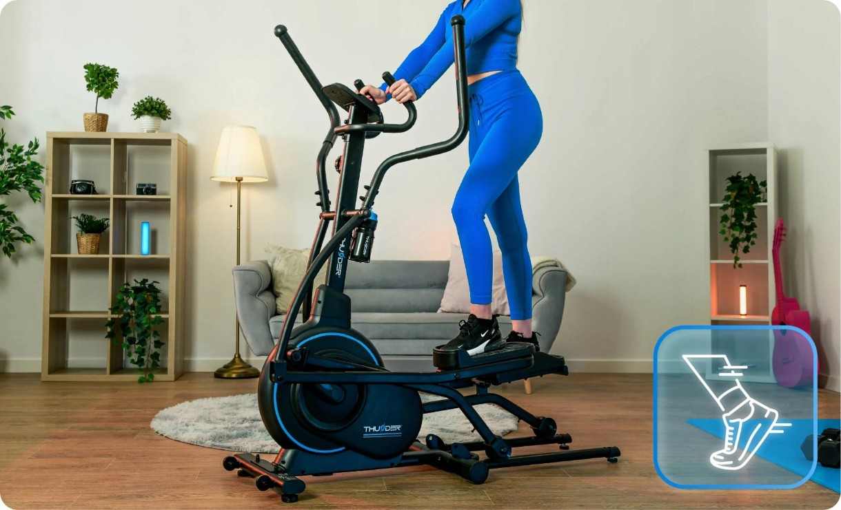 Aparatul eliptic THUNDER® oferă antrenamente eficiente în confortul casei tale, ajutându-te să îți îmbunătățești rapid forma fizică și starea de sănătate.
